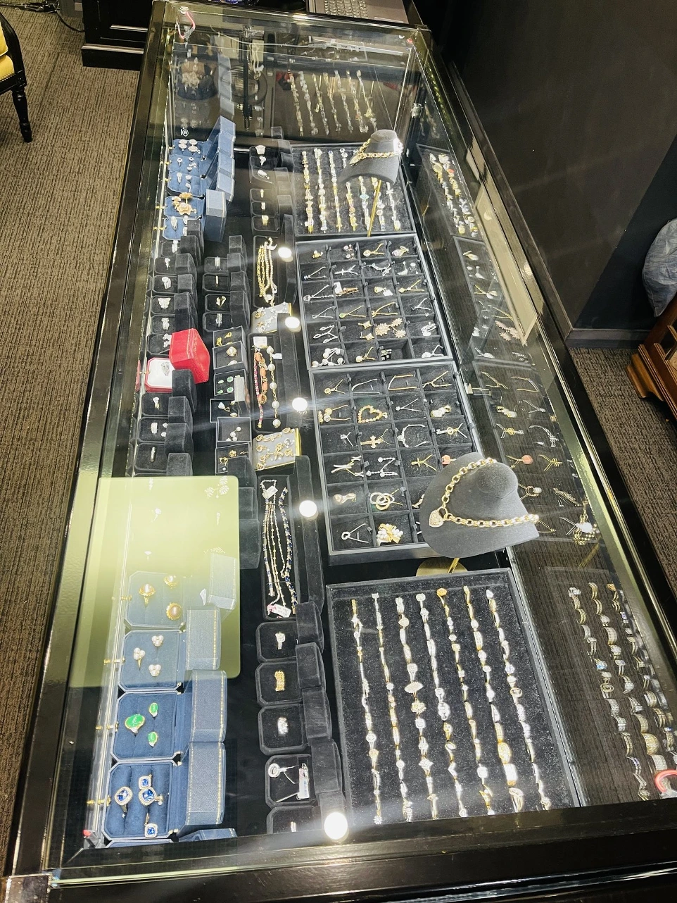 We offer a wide range of jewelry, including engagement rings, wedding bands, necklaces, bracelets, earrings, and more